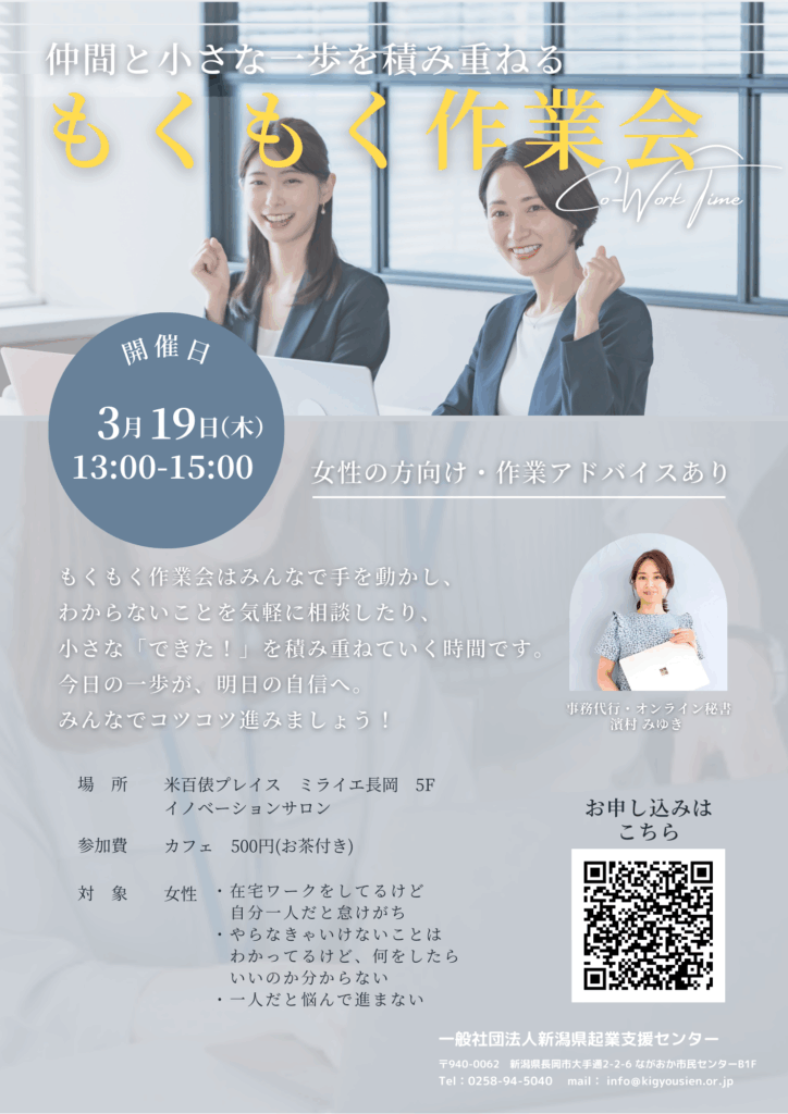 3. 女性の交流会「仲間と小さな一歩を積み重ねる もくもく作業会」 2026年3月開催