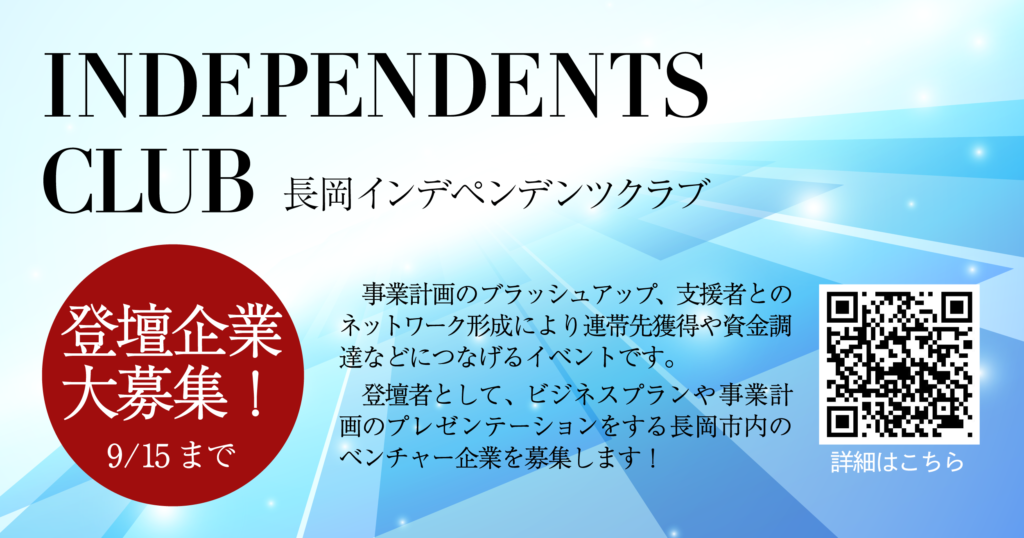 【9/15まで募集!】長岡インデペンデンツクラブの登壇企業を募集します!【10/21開催!】