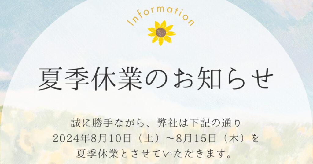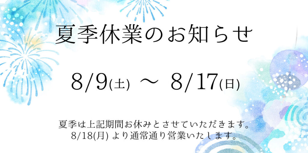 夏季休業のお知らせ