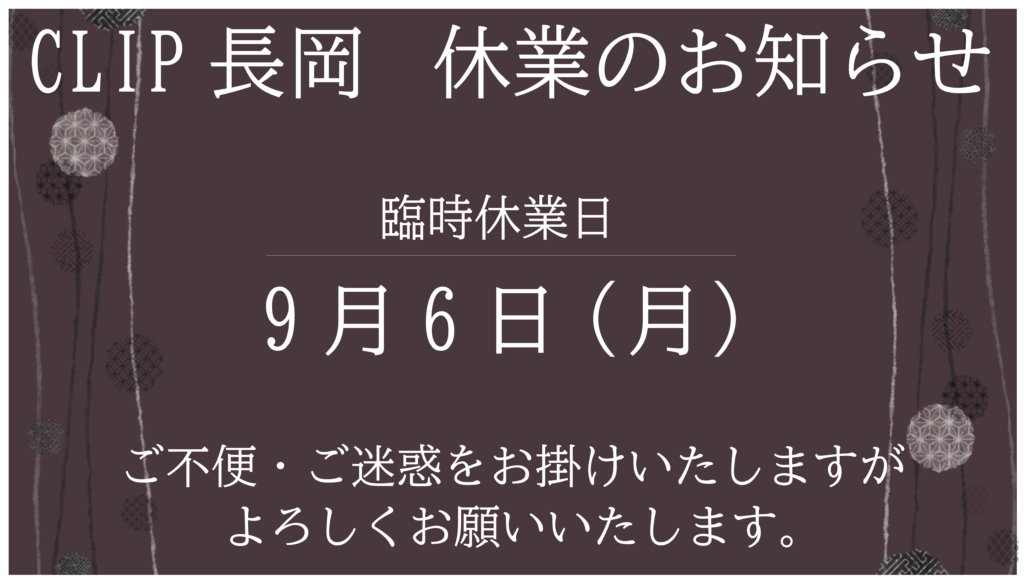 【9/6】臨時休業のお知らせ