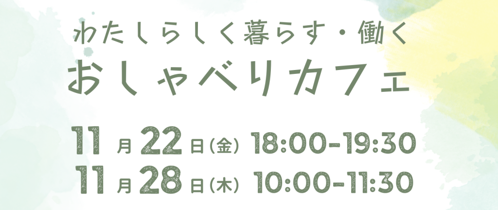 【終了/開催レポートあり】女性の交流会「わたしらしく暮らす・働く おしゃべりカフェ」2024年11月開催