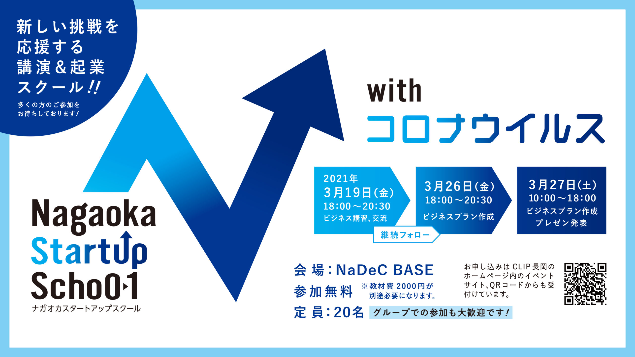 「Nagaoka Startup School withコロナウイルス」では、アイデア構想·お金の流れ・マーケティング方法等をチー ムで 1 から考え、ビジネスプランを組み立てていきます。