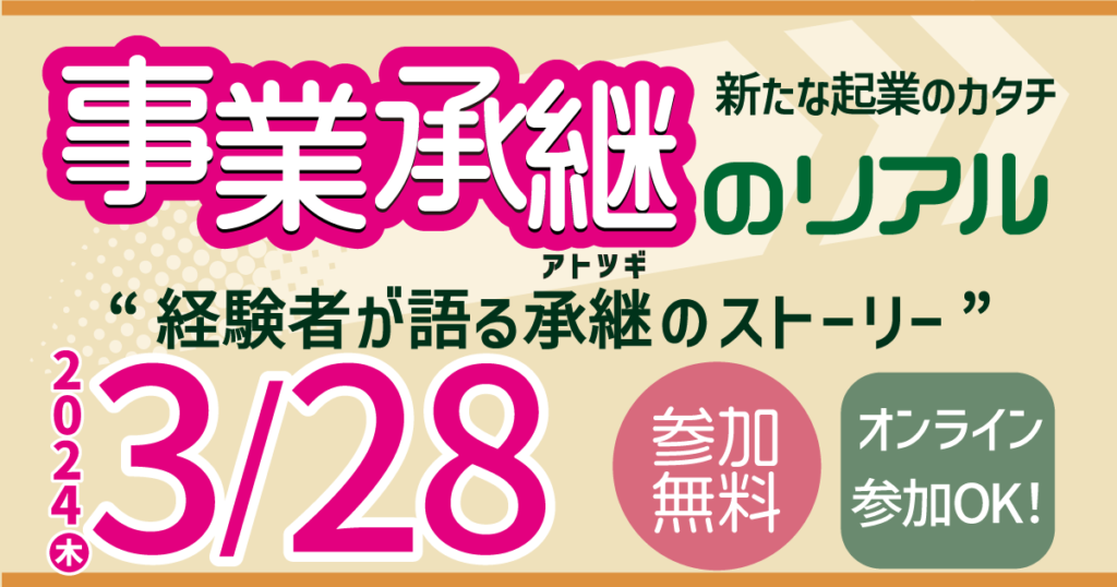 【終了】新たな起業のカタチ 事業承継のリアル“経験者が語る承継のストーリー”